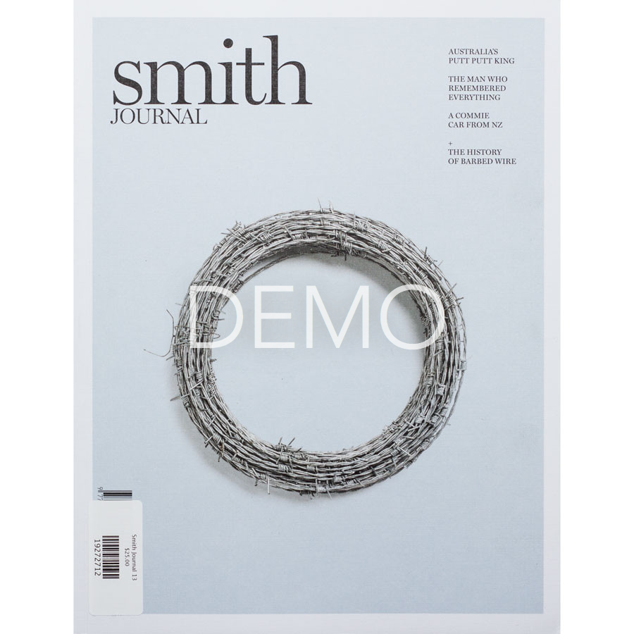 Volume 13 of Smith Journal is crammed with more than its fair share of sharp minds. Top of the list would have to be Solomon Shereshevsky, who remembered every single thing he’d ever come across – a great skill to have when it came to party tricks, but enough to send him crackers. And then there’s Delbert Trew who spends more time than you can imagine thinking about something very sharp indeed: barbed wire. You can’t go past Samuel Morse, either, who was a famous portrait painter before he gave his name to the code he invented. What a genius! And we’re pretty taken with Noel Turner, who was smart enough to get around some pretty weird New Zealand laws to invent a car that, for a while, was a huge success. As well, you’ll find stories on a cross-dressing spy, a couple of Sydney nerds who revolutionised modern music, court illustration, big wheels, the dubious science of controlling the weather and a whole stack of other stuff.